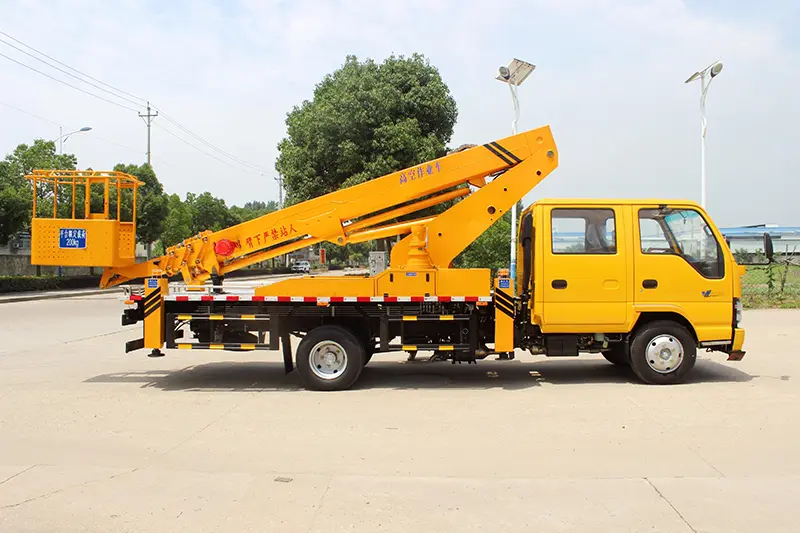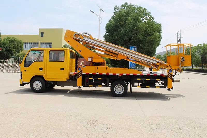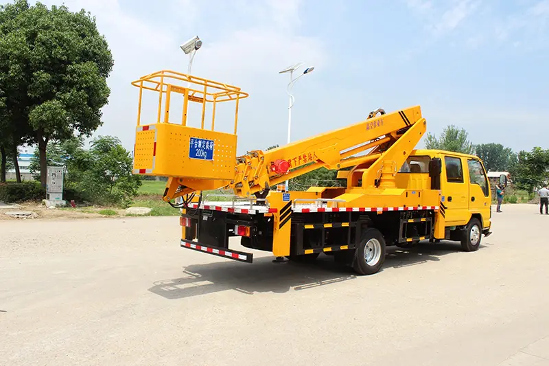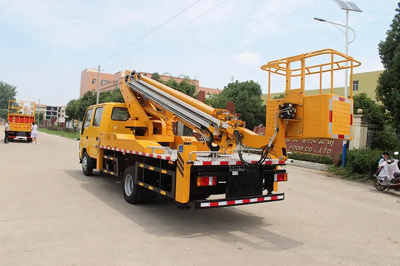 15-21m টেলিস্কোপিক বুম এরিয়াল ওয়ার্ক ট্রাকের বুম এবং আউটরিগারগুলি Q345 লো-অ্যালয় প্রোফাইল দিয়ে তৈরি, ঢালাই ছাড়া এবং উচ্চ শক্তি সহ; আউটরিগারগুলি পরিচালনা করার জন্য নমনীয়, টার্নটেবলটি 360° উভয় দিকে ঘোরাতে পারে, বৈদ্যুতিক নিয়ন্ত্রণ উত্তোলন আর্ম এবং দুটি সেট উপরের এবং নীচের অপারেটিং প্ল্যাটফর্মের সাথে সজ্জিত, নিরাপদ এবং সুবিধাজনক।